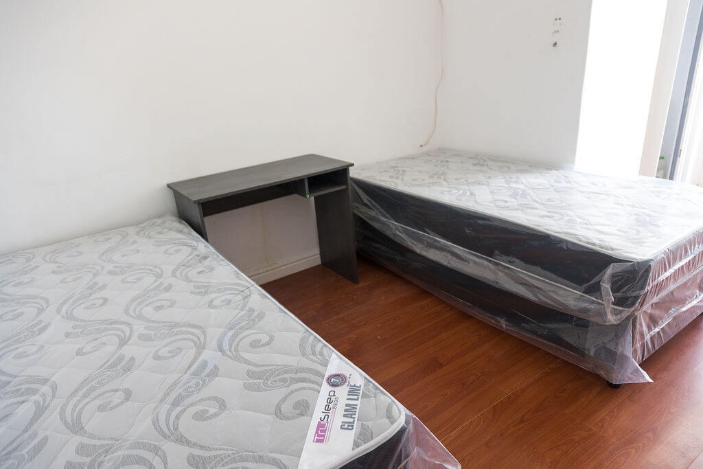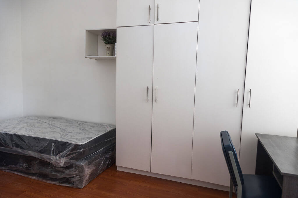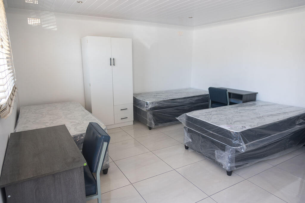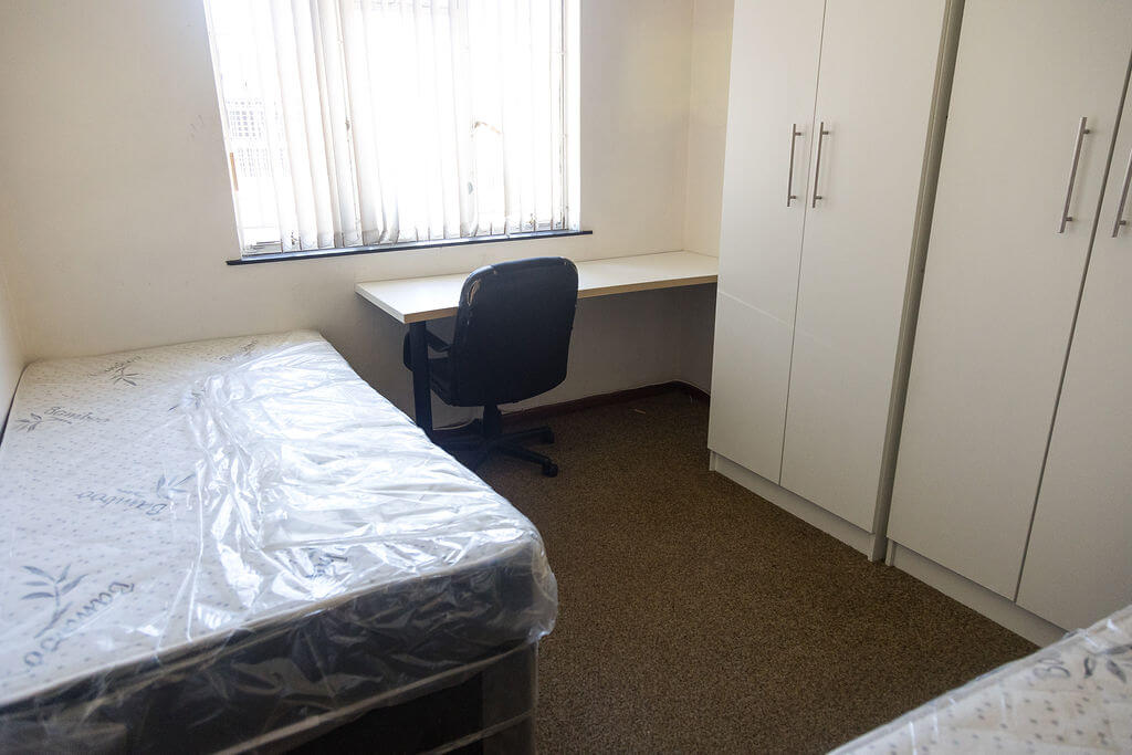 Each bed comes with a cupboard, desk, chair, nightlamp and mattress protector.